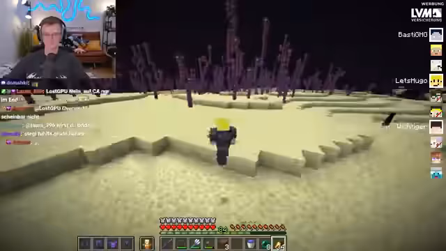 08:44:08Im Stream werden Pläne für die bevorstehende End-Dimension besprochen. Man entscheidet sich dafür, gemeinsam mit dem Gas zu fliegen, auch wenn die Flugzeit etwa eine halbe Stunde beträgt. Es wird über die Zielrichtung diskutiert und Waypoints im Chat geteilt. Gleichzeitig wird die Position des Konzerts am Spawn erwähnt und es herrscht Unklarheit über den genauen Treffpunkt für die gemeinsame Reise ins End.