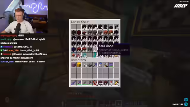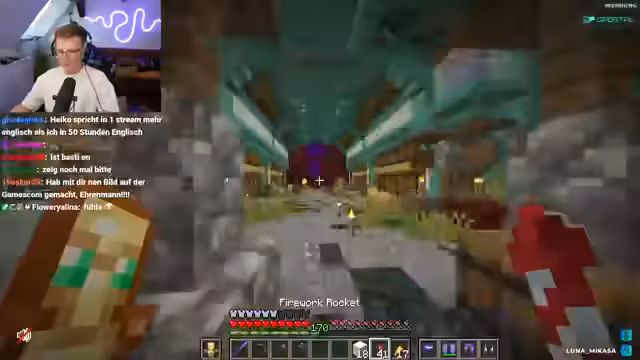 02:17:33Es wird eine Morchel gebaut, und der Streamer fragt, wer für die Zuschauer ein Morchel als Pilz ist. Es wird kurz ein Bild einer Morchel gezeigt. Jemand im Chat schlägt Merle vor, woraufhin der Streamer zustimmt, dass Merle wie eine Maukel ist. Es werden Weeping Vines und Glowy Moey platziert. Der Streamer schaut nach Akazienholz, Stripped Oakwood und Copperstairs, sortiert alles im automatischen Lager ein und baut dann mit Oak, White Stained Glass Pane und Strapdoors. Es werden Campfire und Glowstone hinzugefügt, aber Laternen fehlen. Traptors und Copper Doors werden fast vergessen. Blumen werden hinzugefügt und ein Haus in der Ecke gebaut. Der Streamer fragt, wer das Haus designt hat und lobt es, obwohl es peinlich ist, dass er Dirt vergessen hat. Er hasst es, Gras zu vergessen. Ein letzter Würfel wird platziert, um das Projekt abzuschließen.