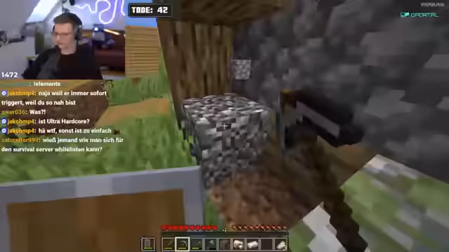 02:54:19Es wird ein Spoiler zum Red Bull Event geteilt, bei dem Feister im Introshot einen CC (Creative Cloud) gehittet hat, der jedoch nicht sichtbar war, da er auf der Bank saß. Es wird gehofft, dass Feister eingewechselt wird. Im Minecraft-Gameplay wird eine Höhle erkundet, die jedoch als gefährlich eingestuft wird. Der plötzliche Tod des Charakters wird kommentiert und die Notwendigkeit betont, vorsichtiger zu spielen. Es wird eine Anekdote darüber erzählt, wie der Streamer in der Beta 1.8 mit Minecraft angefangen hat, nachdem sein Vater nach anfänglicher Skepsis das Spiel gekauft hatte. Es wird überlegt, wohin man sich im Spiel als nächstes begeben soll, wobei die Angst vor Haien im Wasser thematisiert wird. Das Ziel ist es, ein Dorf zu finden, um zu überleben.