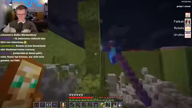 04:00:46Der Streamer arbeitet an CraftAttack-Ressourcen wie Resin Clump und Glocken, während er einen Akazien-Fansgate und Prismarine-Shard sammelt. Gleichzeitig analysiert er WoW-Klassenmechaniken wie Jäger-Pets (ab Level 10) und kritisiert seinen eigenen Melee-Spielstil bei Range-Charakteren. Die Diskussion erweitert sich auf seltene WoW-Items wie globale Einmal-Drops und Bergbau-Profile für Level-60-Rennen. Humorvoll beklagt er sich über Kartoffel-Beleidigungen während des Essens und plant Padlern-Training für das Event, um zukünftige Todesfälle zu vermeiden.
