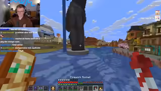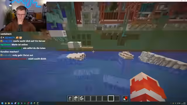 04:05:47Merle kritisiert die bestehende Brücke als zu lang und unschön, was zu einer gemeinsamen Sidequest führt: Die Brücke wird abgerissen und durch kleine, organisch wirkende Inseln ersetzt, die über moosbewachsene Holzbrücken oder Lianen verbunden sind. Parallel dazu wird das Hide & Seek Event vorbereitet, indem Mods installiert werden. Technische Herausforderungen bei der Mod-Konfiguration (Fabric API, Version 1.21.8) werden gemeinsam gelöst, und die erste Testphase der Mod zeigt beeindruckende Versteckmöglichkeiten durch Block-Transformationen.