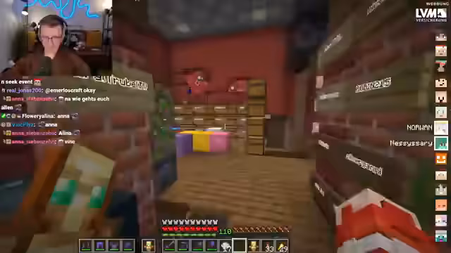 01:54:07Heiko Kars Crafter besucht den Stream und lobt eine Baumfarm, die er im Stream gesehen hat. Es folgt ein Gespräch über deren Funktionsweise und die Möglichkeit, sie selbst zu nutzen. Anschließend wird über die bevorstehende Hide & Seek-Event vorbereitet. Es gibt persönliche Anekdoten über gemeinsame Touren und humorvolle Geschichten über andere Streamer, wobei das Event klar als Highlight angekündigt wird.