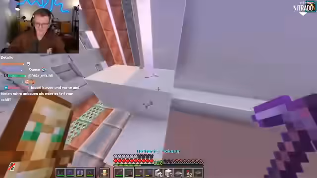 03:05:20In dieser Phase wird intensiv an einem Banner für Craft Attack 13 gearbeitet, wobei ein Atom-Symbol mit einem Schnurrbart-Creeper diskutiert und umgesetzt wird. Der Streamer experimentiert mit gelben Blöcken und dem Schnurrbart-Design, um ein verlaufendes Symbol zu kreieren, und entscheidet sich schließlich für eine Kombination aus Atomzeichen und Schnurrbart-Creeper. Trotz anfänglicher Zweifel ('Psychose' bei der Erstellung) wird das Ergebnis als gelungen bewertet und als Inspiration für zukünftige Container-Verzierungen festgehalten, wobei auch die Idee von gelben Konkretblöcken im Hintergrund diskutiert wird.