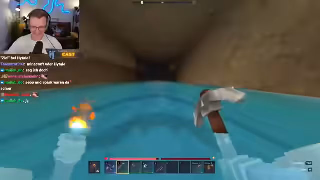 01:44:01Zu Beginn des Streams versucht der Streamer, einen Teleporter zu platzieren, stößt jedoch auf ein Platzlimit, was auf ein Server-Problem hindeutet. Trotz dieser Rückschläge bleibt er motiviert und beginnt stattdessen damit, in der Umgebung nach Kobalt zu farmen, dem hochwertigsten Erz für die nächste Rüstungs- und Werkbank-Stufe. Er sortiert sein Inventar und plant den Aufstieg zu besseren Ausrüstungsgegenständen.