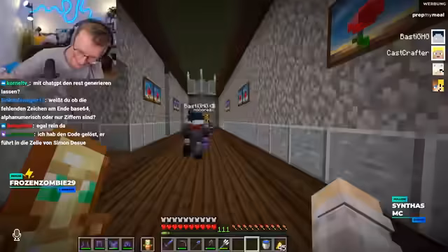 04:25:51Eine zentrale Aufgabe im Event ist das Entschlüsseln von QR-Codes, die in einem Raum im Nether gefunden wurden. Der Streamer berichtet über die systematische Analyse der Codes. Es wurden bereits Pixel-Vergleiche durchgeführt, um herauszufinden, welche Bits sich ändern könnten. Die Teilnehmer diskutieren über die Moral und den Sinn eines möglichen 'Brute-Force'-Angriffs auf den Code, entscheiden sich jedoch dagegen, da dies nicht im Sinne der Herausforderer sei. Stattdessen wird auf das offizielle Freischalten der Lösung gewartet. Der ganze Prozess wird als mental anstrengend aber faszinierend beschrieben, da er von einem Coder-Team entwickelt wurde.