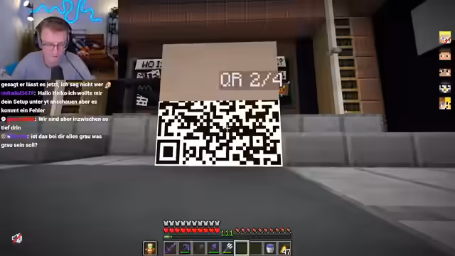 00:24:47Der Fokus verlagert sich komplett auf die Vorbereitung für das Rätsel. Es wird die Notwendigkeit von Totems, Enderperlen und Netherit-Rüstungen diskutiert. Die Teammitglieder Heiko und Marcel unterhalten sich über mögliche Lösungsstrategien, einschließlich des Brute-Force-Ansatzes für den QR-Code, falls dies erforderlich sein sollte.