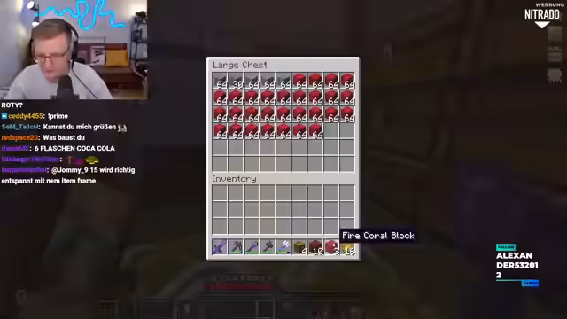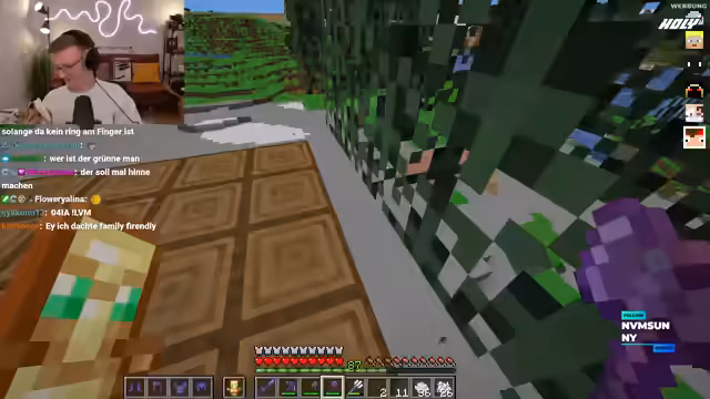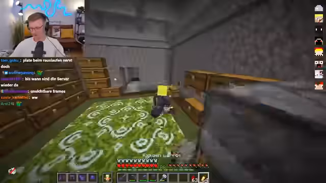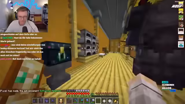 00:13:02Der Fokus des Streams liegt auf dem Bau eines Schiffes, das als mobile Farm dienen soll. Gleichzeitig sind Pläne für eine Netherite-Farm in Arbeit, wobei der Zustand der bereits bestehenden Farm ungewiss ist. Für den Tag ist ein Treffen mit Basti zur Redstone-Planung angesetzt, wobei eine automatische Portal-Farm und eine kombinierte Chiseled Bookshelf-Tür als mögliche Projekte diskutiert werden.