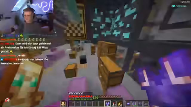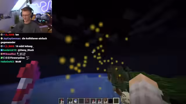 01:12:10Mod 4 entpuppt sich als ein illegaler Glücksspiel-Block, bei dem Villager als Slotmaschinen fungieren und Items wie Diamanten ausspucken. Der Streamer ist über diese Entwicklung schockiert und droht mit einer Abmahnung. Mod 5 führt zu absurden Crafting-Rezepten mit Kombinationen wie 'Multishot 1000 Enderpearl', was zu extremen Performance-Problemen und einem Overload der Spielwelt führt. Das Ergebnis ist ein visu wirbelsturmartiges Partikelphänomen.