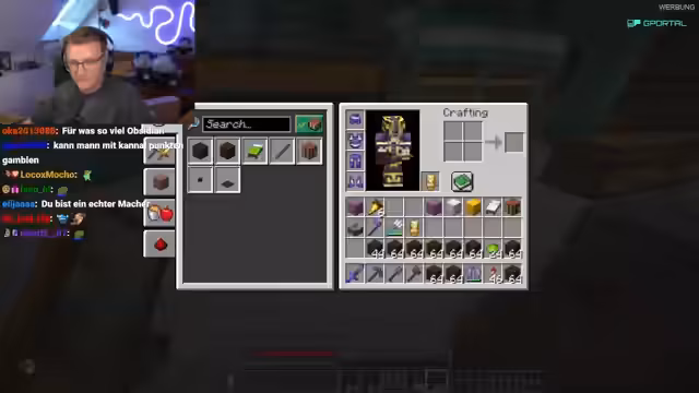 03:26:44Nach den Produktempfehlungen wechselt der Streamer zum Gameplay von Craft Attack. Er beginnt mit dem Farmen von benötigten Ressourcen. Zuerst craftet er aus 21 Stacks Kahle Eichenholzbretter Lime Farbstoff und stellt dabei Rechenfehler bei der Mengenangabe fest, die er im Chat korrigieren lässt.
