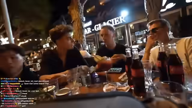 07:00:20Nach dem Essen beginnt die Gruppe, verschiedene Desserts zu probieren. Dabei kommt es zu einem witzigen Vorfall, bei dem einer der Streamer versehentlich Sahne ins Gesicht eines anderen bekommt. Dies führt zu großem Gelächter und ausgelassenen Szenen. Die Beteiligten nehmen die Situation mit Humor und nutzen die Gelegenheit für humorvolle Schnappschüsse und kommentare.