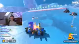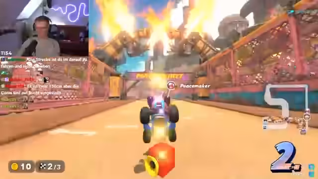 00:29:16Um dasMario Kart World-Event vorzubereiten, startet der Streamer einen spontanen Testlauf. Er spielt zum ersten Mal überhaupt online in Mario Kart, da er es normalerweise nur lokal mit Freunden zockt. Er nutzt den Code Z4JYG, um eine Online-Lobby zu erstellen, in der sich einzelne Chat-Mitglieder wie Peacemaker beteiligen. Es werden mehrere Rennen auf verschiedenen Strecken gefahren, wobei der Streamer trotz neuer Bekanntschaft mit den Online-Mechanics und der Strecken schwächelt, aber den Spaß am Game und an der Interaktion betont.