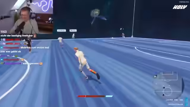 01:49:26Nach dem终于 erfolgreichen Beitritt von Maxi beginnen die ersten Runden in Rematch. Der Streamer spielt als Torwart und hat Schwierigkeiten mit den Spielmechaniken, insbesondere dem Passen und Abwehren. Er diskutiert intensiv mit seinem Teamkameraden Heiko über die Spielzüge, Positionierung und Taktiken wie das 'Backborden'. Das Gameplay ist geprägt von engen Situationen, Kontern und einem ständigen Wechsel zwischen Torwart- und Feldspielerrolle.