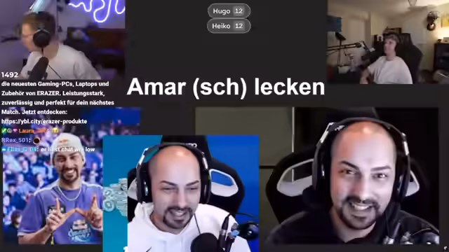 00:27:06Der Stream wechselt zu einer Kooperation mit Hugo. Es beginnt das Spiel "Influencer an Emojis erraten". Beide Streamer müssen versuchen, anhand von Emojis einen bestimmten Influencer zu identifizieren. Die Runde ist intensiv und voller Spannung, da beide unter Zeitdruck antworten. Es kommt zu unterschiedlichen Lösungsansätzen und teils humorvollen Fehlinterpretationen. Die Zuschauer interagieren stark im Chat und bringen Tipps ein, was die Dynamik zwischen den beiden Streamern und den Spielern belebt. Die Spannung steigt, während die Runde voranschreitet und beide Punkte sammeln.