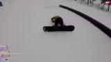 00:22:30Beim Versuch, die Skipässe digital zu lösen, kommt es zu einem Unfall. Ein Verlängerungskabel, das an der Skilift-Terminal angeschlossen war, wird durchgeschnitten und ist nun komplett zerstört. Dies führt zu einer Verzögerung, da die Gruppe die Pisten nicht ohne gültige Karten befahren kann. Nachdem die technischen Hürden überwunden sind, beginnt das Snowboarden mit einem starken Wind, der als todesanstrengend beschrieben wird. Die ersten Abfahrten finden auf einer blauen Piste statt, die jedoch als sehr flach und unzureichend für Tricks empfunden wird.
