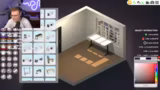 01:11:58Nachdem das eigene Designbedürfnis nicht voll durch das Spiel abgedeckt wird, sucht der Streamer aktiv nach Inspiration. Er lehnt sowohl den sogenannten 'Cozy Girl Gamer Look' als auch rein Industrial-Designs ab. Stattdessen favorisiert er eine naturalistische, grüne Atmosphäre. Letztendlich entscheidet er sich für die Platzierung des Schreibtisches vor dem Fenster mit abgedunkelten Vorhängen, um eine ähnliche Stimmung wie im jetzigen Zimmer zu schaffen, jedoch mit mehr Platz für Deko und andere Elemente im Hintergrund.