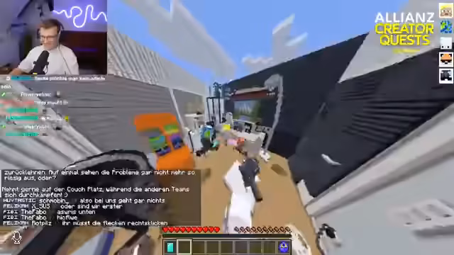 00:23:29Der Hauptfokus liegt auf der Allianz Creator Quest Gaming, einem Minecraft-Turnier. Es werden drei Spiele gespielt: ein Jump'n'Run Parcours, ein Escape Room und Highland Seek. Für Highland Seek können Zuschauer auf dem Discord-Server mitmischen. Es wird ein Voting-System vorgestellt, bei dem die Zuschauer für das Siegsteam voten können. Je besser das Team abschneidet, desto besser sind die Preise für die Zuschauer. Neben Hauptpreisen wie einer Reise in die Area 47 gibt es auch kleinere Gewinne wie Minecraft-Goodies und Steam-Gutscheine.