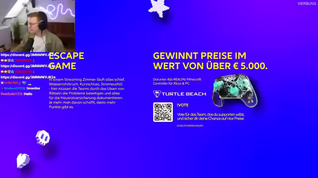 02:09:27Die Spieler diskutieren die Schwierigkeit eines Dropper-Levels und die Anzahl der benötigten Herzen zum Überleben. Es wird über taktische Resets gesprochen, um dem Team zu helfen, und der Wunsch nach mehr Checkpoints geäußert, um das Testen schwierigerer Abschnitte zu erleichtern. Trotz einiger Schwierigkeiten und Tode in letzter Sekunde, beenden sie das erste Spiel und sind zufrieden mit ihrem vierten Platz, der eigentlich ein geteilter dritter Platz ist. Die Spieler analysieren ihre Leistung und erkennen, dass dies ihr bisher schlechtestes Spiel war, was ihre Platzierung noch beeindruckender macht. Es folgt die Aufforderung an die Zuschauer, bis 18 Uhr für ihr Team zu voten, um Preise im Gesamtwert von bis zu 5000 Euro zu gewinnen. Die Abstimmung kann über die Website oder einen QR-Code erfolgen, wobei die Teilnahme an der Verlosung für verschiedene Preispools von der Platzierung des Teams abhängt. Der Hauptpreis ist eine fünftägige Reise für vier Personen in die Area 47 in Österreich, einem riesigen Action-Parcours, aus dem die Jump'n'Run-Map stammt. Die Zuschauer werden aufgefordert, sich den Pass in ihre Wallet zu laden, um über die nächste Creator Quest informiert zu werden und zu erfahren, ob sie gewonnen haben.