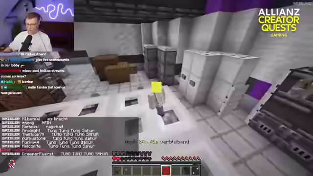 Ein Minecraft-Team stellt sich der Allianz Creator Quest mit Jump'n'Run, Escape Room und Highland Seek. Teamwork und Strategie sind entscheidend, um die Herausforderungen zu meistern. Zuschauer können für das Team voten und Preise bis zu 5000 Euro gewinnen, darunter eine Reise in die Area 47. Eine neue Gaming-Quest in Trackmania bietet weitere Gewinnchancen.