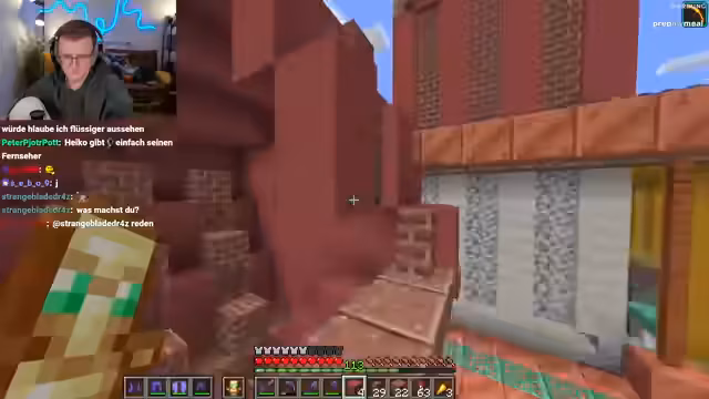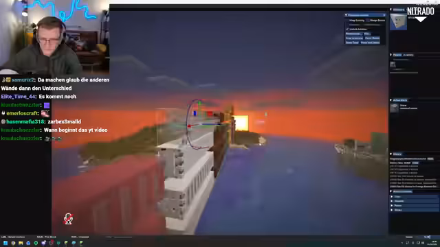05:06:52 Ja. Okay. Aber juckt mich nicht. Also... Ich kaufe mir einfach neue da. Nee, aber ich... Ich hole mir ganz viele Kameras. Auch für Indoor. Was stört mich hier gerade, Marcel? Ja, du, also so fallende Objekte bauen, die so leicht schräg sind, in Minecraft immer hart. Nee, es fällt ja nicht. Nee, was ist das? Es fällt doch nach rechts runter, oder nicht? Ja, aber es fällt nicht.