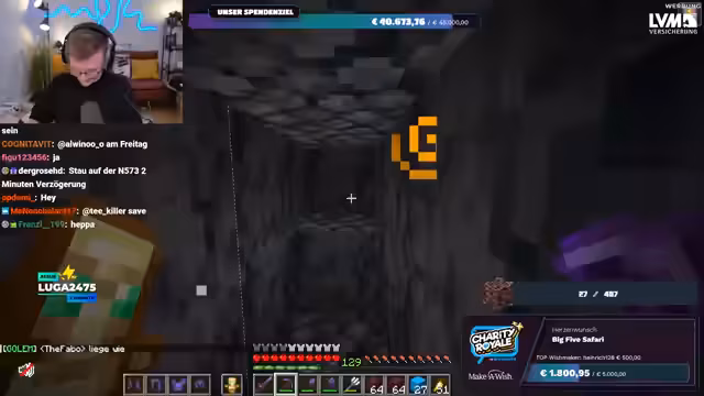 03:12:04Die Spendensumme nähert sich rasant der 40.000-Euro-Marke. Innerhalb von nur drei Stunden live wird dieses Ziel erreicht, maßgeblich unterstützt durch eine 500-Euro-Spende von Heinrich Schall für die 'Big Five Safari'. Die Begeisterung im Chat ist riesig, und der Streamer ist überwältigt von der Großzügigkeit. Trotz des beeindruckenden Spendenflusses beklagt sich der Streamer über die geringe Ausbeute an Ancient Debris, was die eigentliche Challenge des Streams betrifft. Kurz darauf folgen weitere bemerkenswerte Spenden, darunter 100 Euro von Kyo und 50 Euro von Simon, die die Stimmung weiter anheizen und die Ancient Debris-Suche vorantreiben.