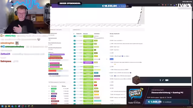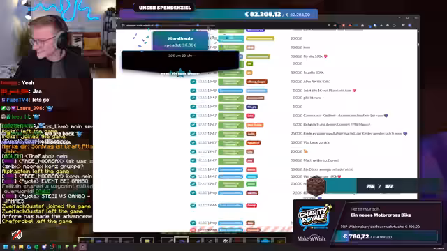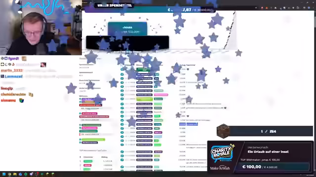 00:13:45Der Stream beginnt mit einer herzlichen Begrüßung der Zuschauer und einer kurzen Entschuldigung für die lange Musikwarteschlange. Es wird angekündigt, dass es sich um einen weiteren großen Charity Royale Stream handelt, der bereits zum vierten oder fünften Mal stattfindet. Das Ziel ist es, so viel Geld wie möglich für Make-A-Wish zu sammeln. Make-A-Wish ist eine Organisation, die schwerstkranken Kindern Wünsche erfüllt, wie zum Beispiel eine Reise ins Disneyland, einen Basketballkorb oder einen Laptop. Die Zuschauer werden ermutigt, zu spenden, da jede Spende dazu beiträgt, mehr Wünsche zu erfüllen. Der Streamer zeigt sein Dashboard, auf dem die Spenden und Ziele verfolgt werden können, und erklärt, dass bei Erreichen eines Ziels ein neues festgelegt wird. Die ersten Spenden treffen bereits ein, noch bevor der Stream richtig begonnen hat, was die Begeisterung der Community zeigt.