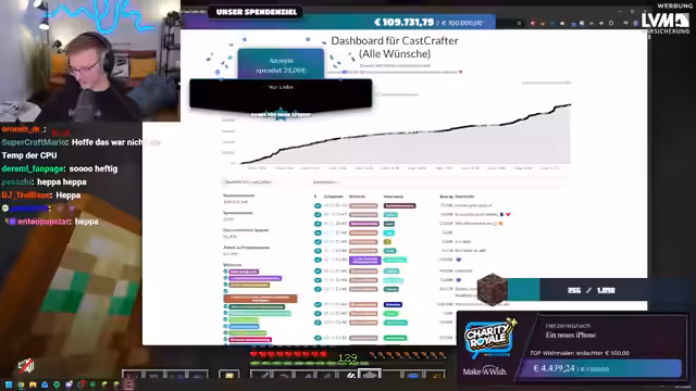 Ein besonderes Minecraft-Event erreichte einen beeindruckenden Erfolg, indem es über 100.000 Euro für die Make-A-Wish-Stiftung sammelte. Während des Events wurden zahlreiche Wünsche für schwer kranke Kinder erfüllt, darunter Reisen ins Disneyland und Legoland. Trotz anfänglicher Schwierigkeiten beim Sammeln von Ancient Debris im Spiel und kurzzeitigen Ausfällen der Spendenseite aufgrund des hohen Spendenaufkommens, zeigte sich die Community äußerst engagiert und übertraf alle bisherigen Rekorde.