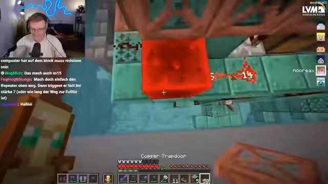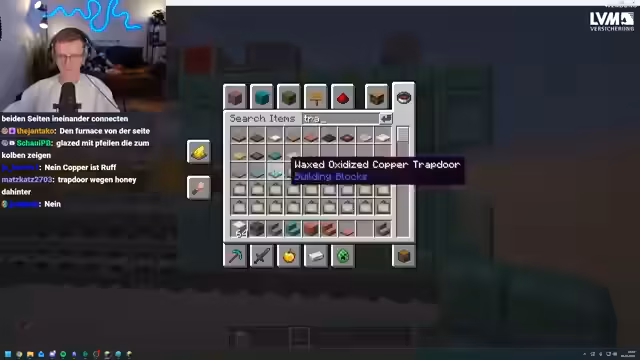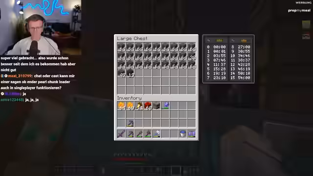 08:59:26Der Streamer beschäftigt sich intensiv mit dem Bau eines hochkomplexen Stasis-Systems, das es ermöglicht, den Spielcharakter nach dem Aus- und Einloggen an derselben Stelle zu spawnen. Dabei werden ein Ender-Perlen-Trigger und eine Redstone-Uhr überlegt. Es gibt Unsicherheiten darüber, ob ein Chunk-Lader zusätzlich benötigt wird, wenn der Chunk beim Ausloggen entlädt und die Redstone-Signale verloren gehen. Die最终lösung soll modular gestaltet werden, um die Funktion optional ein- und ausschalten zu können.
