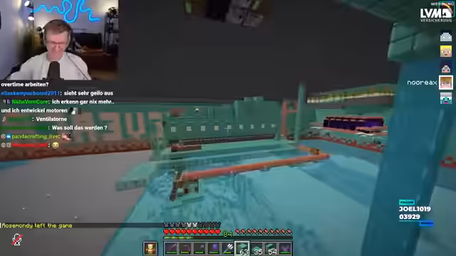 06:15:37Die Konversation beginnt mit der Diskussion über ein Foto und dessen Entstehung, wobei der Streamer ein zweites Handy für die Aufnahme nutzt. Anschließend folgt eine lange Phase, in der sich der Streamer intensiv mit verschiedenen technischen Bautätigkeiten beschäftigt. Er stößt dabei mehrfach auf technische Schwierigkeiten und Fehler im Aufbau, insbesondere bei Glas- und Obsidianstrukturen. Diese Probleme verursachen bei ihm Frust und er fordert wiederholt auf, diese Mängel zu beheben, um einen symmetrischen und funktionalen Bau sicherzustellen. Ein zentrales Problem ist, dass die Glasstrukturen nicht bis nach unten reichen und unregelmäßig platziert sind, was seine Arbeitsabläufe stört.