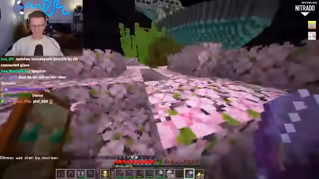 01:05:06Ein neues Projekt wird ins Leben gerufen: der Bau eines Glashauses als botanischer Garten. Der Streamer hat eine konkrete Vision für die Struktur, die er realisieren möchte, ist sich aber noch unsicher über die genaue Konstruktion. Er sammelt dafür Glasblöcke und -stämme, stellt aber fest, dass die verfügbare Menge nicht ausreicht. Der Bau dient als Ablenkung vom stressigen Alltag und dem Gefühl, in einem „vorbereiteten Zustand“ zu sein, was ihm besonders Spaß macht und eine kreative Auszeit vom Rest des Streams bietet.