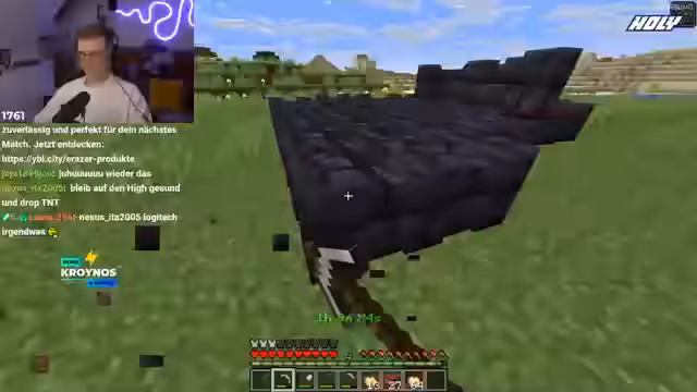 03:33:51In der Höhle wird die Kommunikation mit Teammitgliedern wie Fred und Shark intensiviert. Der Streamer versucht, motivierend zu wirken, während er die Höhle erkundet. Es werden strategische Entscheidungen getroffen, wie etwa das Verwenden von TNT und das Sammeln von Ressourcen wie Holz. Dabei wird deutlich, dass der Fokus auf Teamarbeit und gegenseitige Unterstützung liegt.