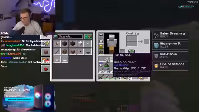 03:35:14Der Streamer äußert Bedenken bezüglich seiner Rüstung, insbesondere hinsichtlich Haltbarkeit und Schutz. Es wird diskutiert, wie effektiv die Eisenrüstung gegen die späteren Wellen sein wird. Der Streamer entscheidet, sich auf OP-Gaps zu konzentrieren und plant, mehrere Stacks davon zu verwenden. Strategien wie das Durchgapen und der Schutz durch Blöcke werden erörtert.