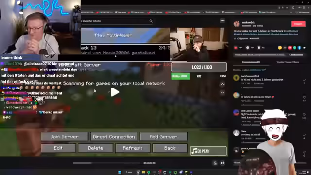 05:07:56Das Hauptevent, der Start des Infinity Castle-Projekts, beginnt offiziell. Der Streamer erklärt, dass dies ein großes, von seinem Team demonslayers gebautes Projekt ist, das auf Farmen und der Nutzung von 700.000 Materialien basiert. Es kommt jedoch zu erheblichen technischen Schwierigkeiten, da einige Teilnehmer, wie Willi, nicht auf den Server zugreifen können, weil sie kein VPN nutzen. Dies führt zu Verzögerungen und unglücklichen Umständen am Anfang der Veranstaltung. Trotzdem wird die enorme Teamleistung und das in drei Wochen erbrachte Engagement gewürdigt.