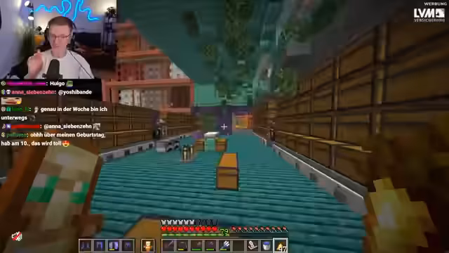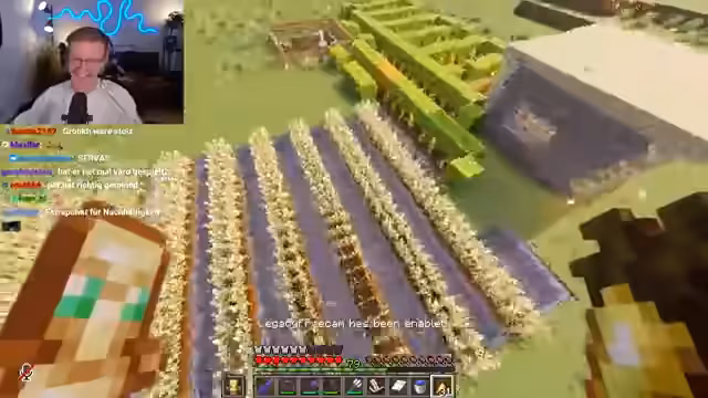 02:23:33Der Streamer besucht die riesige Hafenstadt von Flo, die ihn an seine eigenen Minecraft-Anfänge erinnert. Er bewundert, wie Flo jeden Blöck sorgfältig sammelt und verarbeitet, insbesondere die Kohle zu Kohleblöcken umwandelt. Besonders positiv hervorgehoben wird Flos Weizen- und Melonenfeld, das einen sehr authentischen und nostalgischen Eindruck hinterlässt. Trotz des beeindruckenden Ausmaßes der Stadt, die zurzeit noch nicht fertig ist, wird Flo für seine enorme Arbeitsleistung gelobt, da er neben seinem sehr vollen Alltag mit Podcast und Videos Zeit für diese Projekte findet.