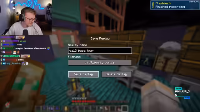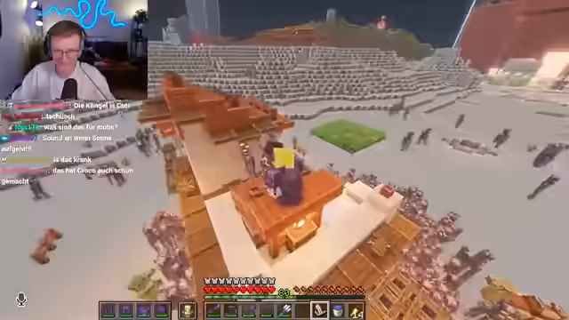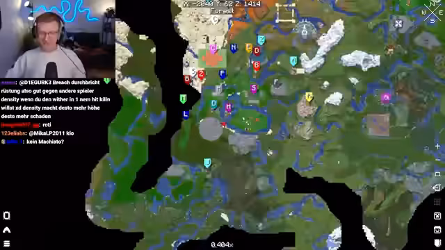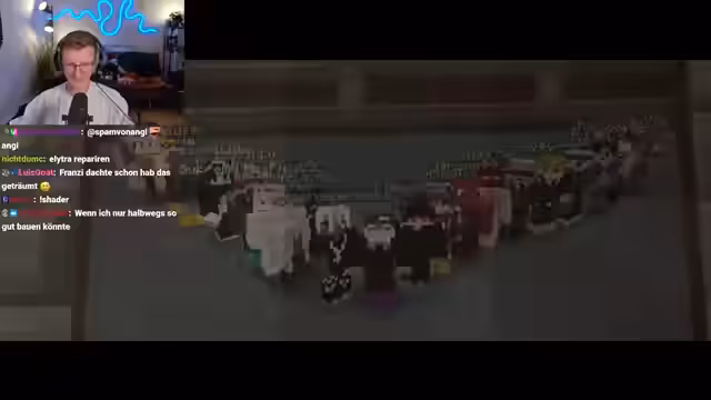 01:28:03Der Streamer besucht die Base von Feli, die auf einem floralen Map-Download basiert und eine komplexe Sanduhr-Form anstrebt. Feli berichtet von erheblichen technischen Problemen, da sie zwei Minecraft-Instanzen nicht gleichzeitig nutzen kann, was den Bau stark behindert. Trotz des beachtlichen seitlichen Wachstums der Struktur ist der Gesamtfortschritt gering geschätzt. Der Streamer äußert sich vorläufig sehr kritisch, bewundert aber die ambitionierten geschwungenen Formen und bleibt für die finale Bewertung gespannt.