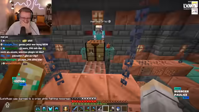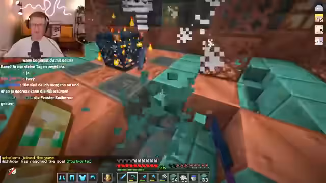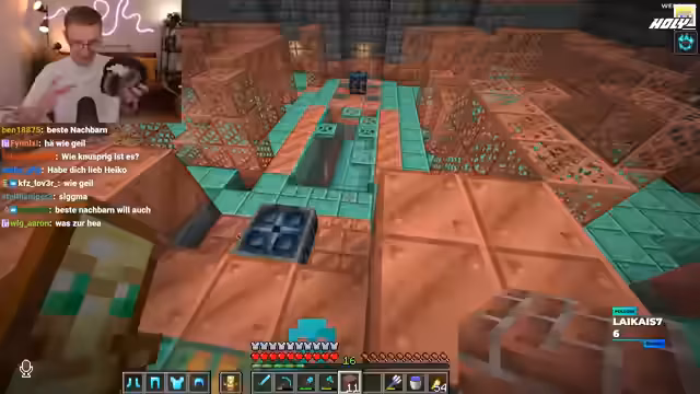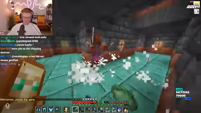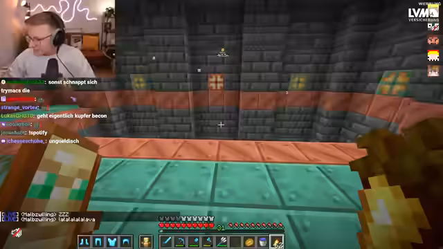 03:13:59Nachdem der Streamer die Existenz von Trial Chambers auf dem Server bestätigt hat, macht er sich auf den Weg dorthin, um sie zu looten. Er ist sichtlich aufgeregt und bezeichnet die Aktion als die erste Trial Chamber Lootung in Craft Attack. Das Ziel ist, die Chambers abzufarmen und besonders viel Kupfer zu klauen, auch wenn das derzeit ohne Beacon stressig ist.