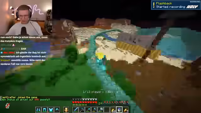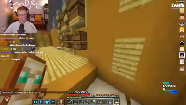 12:40:29Ein offenes Gespräch dreht sich um die Server-Population und die Nutzung von Bauhilfen. Streamer diskutieren, dass die Map und die Vielzahl an Spielern zu mehr Begegnungen und Zufallsinteraktionen führen. Während einige die Einführung von Happy Ghast für sinnvoll halten, da sie das Farmen erleichtert, wird gleichzeitig kritisiert, dass Scaffolding durch Happy Ghast weniger relevant geworden ist. Es wird über den Nether-Delay gesprochen, da viele Builder auf Netherite-Rüstungen und Redstone-Komponenten warten, um größere Projekte zu starten.