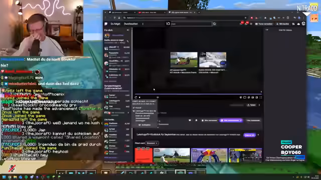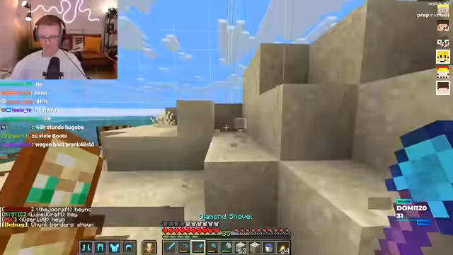 09:40:25Die Streamer widmen sich ihren individuellen Bauprojekten. Einer möchte einen Rave-Bunker mit Redstone-Technologie bauen und sucht nach einem Experten für die Lichtshow, während ein anderer ein Schiff baut. Es gibt auch Diskussionen über den Fortschritt anderer Projekte wie einer Eisenbahn oder der Paluten-Day-Base. Die Teilnehmer tauschen sich über ihre Visionen und benötigen teilweise Unterstützung von talentierten Spielern.