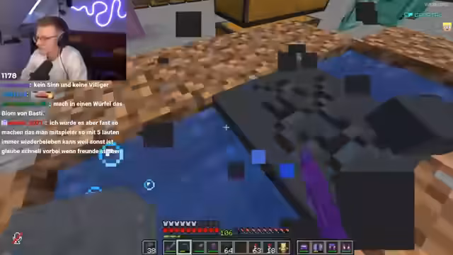 02:36:41Beim Bau seiner Base im Spiel kritisiert der Streamer den Stil von Pumpe, der ohne Sinn herumfuchtelt. Er zeigt sein neues Accessoire, eine 'Cappy', um das tägliche Haarewaschen zu vermeiden. Über die Verwendung von Command Blocks und speziellen Biomen wird diskutiert. Es taucht die Idee für ein 'Hardcore-SMP-Minecraft-Projekt' auf, das wie Craft Attack funktionieren soll.