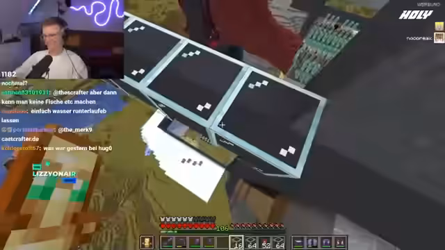 01:57:07Nach der Reiseberichterstattung wechselte der Streamer zum Thema Craft Attack. Er stellte fest, dass die Spielwelt seit dem letzten Besuch stark in Vergessenheit geraten ist. Gemeinsam mit den Zuschauern nahm er sich vor, den Bau ihrer Basis fertigzustellen, insbesondere einen Honigwürfel, der vollautomatisch funktionieren soll. Das Projekt erforderte das Einsammeln großer Mengen an Rohstoffen wie Grau-Beton.