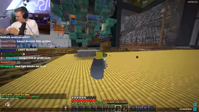 04:14:31Der Streamer unterbricht den Bauspielbetrieb, um eine persönliche Anekdote zu teilen. Er erzählt, wie ihn im echten Leben ein Fan auf der Straße erkannt hat und ihn um ein Grußvideo für seine Snapchat-Gruppe, 'Gruppenwixen', gebeten hat. Anschließend wechselt er das Thema und kündigt ein geplantes 100-Spieler-Hardcore-Event auf seiner Hardcore-Welt an, bei dem er die Zuschauer einladen will, gemeinsam etwas zu tun, wobei die genauen Details noch offen sind.