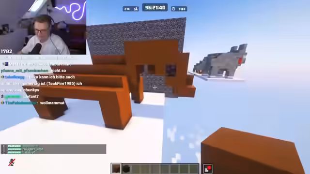 04:20:21Der Stream wechselt zu verschiedenen Minigames. Zuerst wird 'Mensch ärger dich nicht' gespielt, dann ein Ratespiel mit Blöcken, und später wird ein Spiel namens 'Hauding Golem' versucht, bei dem Spieler aus einem Dropper verschiedene Items ziehen und einen Golem damit attackieren müssen. Zum Abschluss gibt es eine Exkursion auf den Creative-Server, um ein Jump-'n'-Run-Kurs zu erkunden und eine Map zu präsentieren.