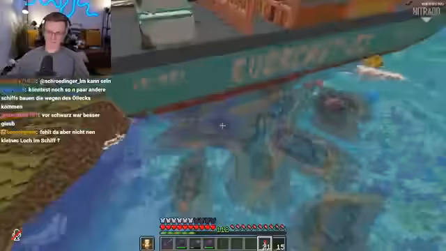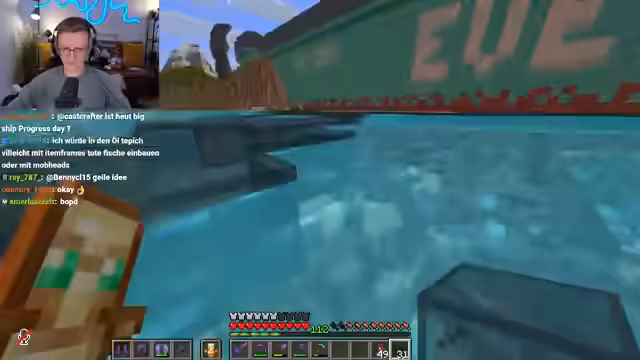 04:38:52Der Streamer stellt das Hauptprojekt der aktuellen Craft-Attack-Folge vor: den Bau eines massiven Ölflecks im Ozean, der als Ursache für den Korallensterben dient. Nachdem in der vorherigen Folge der Ozean trockengelegt, die Korallen getötet und der Bereich neu geflutet wurde, soll nun ein realistischer Ölteppich aus Glasblöcken mit verschiedenen Farbverläufen (schwarz, grau, braun,橙, cyan, blau, lila) erstellt werden, um Schlieren und Schimmereffekte von Öl im Wasser zu simulieren. Das Projekt erfordert große Mengen Sand und spezielle Glasvarianten. Geplant ist eine organische Form, die sich über den bereits abgestorbenen Korallenbereich ausbreitet. Zusätzlich sollen Umweltverschmutzungselemente wie tote Vögel und Fische ergänzt werden. Der Streamer betont den hohen Zeitaufwand für dieses reine Deko-Element und hofft auf ein beeindruckendes visuelles Ergebnis.
