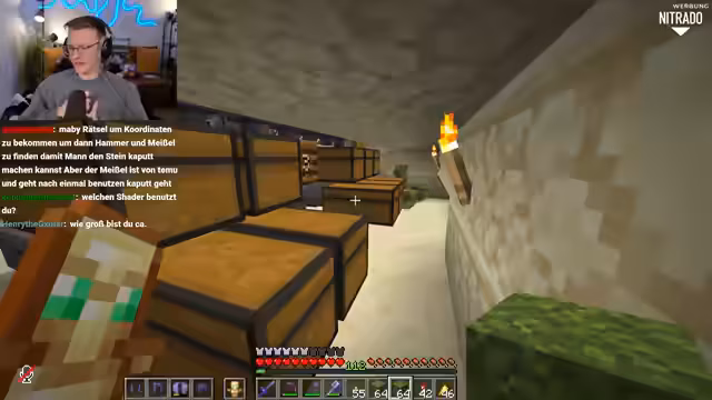 04:56:40Der Streamer und sein Team fahren Geoden ab, um Amethyst und Glas zu farmen. Sie analysieren die Ausbeute und planen, die Geoden nachwachsen zu lassen, um ausreichend Material für das große Glasprojekt zu sichern. Dabei stellen sie fest, dass das Farmen sehr effizient ist und entscheiden, zusätzlich Farbstoffe für spätere Verwendung vorzubereiten, um das Projekt mit braunen und schwarzen Tönen zu starten.