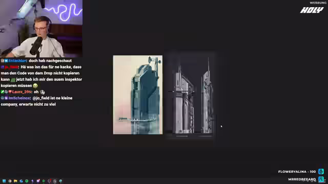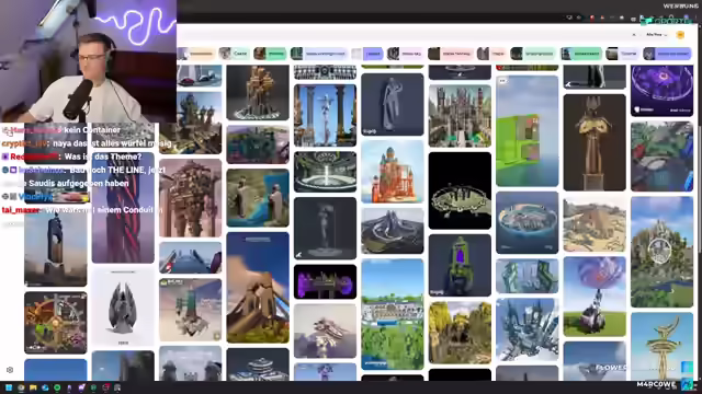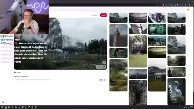 01:50:06Der Streamer äußert sich positiv über das achteckige Space-Ding aus einem Kurzfilm und stellt sich vor, in der Mitte ein Lager mit Beacons zu platzieren und in den Towern Farmen unterzubringen. Eine große Säule mit einem Glaskasten in der Mitte wird ebenfalls als interessant erachtet. Er gibt ein Update, dass er nichts möchte, was in den Boden geht, und favorisiert das Space-Ding in der Luft mit einem Tower und einem fetten Außenteil. In die Mitte soll ein fetter Beacon, in die Füße verschiedene Farmen. Er ist sich noch unsicher, was in die Streben und außen in den Ring kommt. Die Container-Idee wird weiterhin verfolgt. Der Streamer findet das Container-Ding und das Space-Ding geil. Er bittet den Chat und die YouTube-Zuschauer, weitere Ideen in die Kommentare zu schreiben und ihre Favoriten unter den bisherigen Ideen mitzuteilen. Er betont, dass es simple Formen mit einer gewissen Scale sein müssen, damit die Base und Farmen integriert werden können.