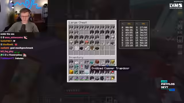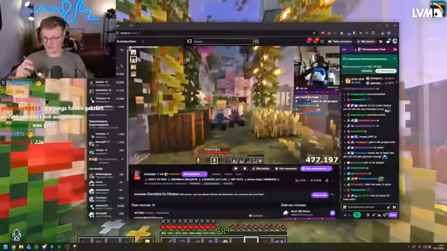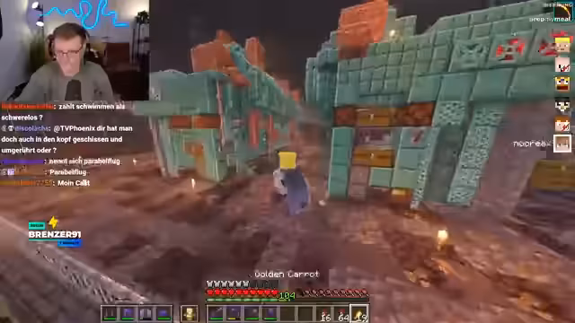 02:00:55Es werden humorvolle Beobachtungen über das Verhalten von Stream-Teilnehmern gemacht, insbesondere über jemanden, der pünktlich um 12:30 Uhr verschwindet, was scherzhaft als 'Arbeitszeitbetrug' bezeichnet wird. Parallel dazu wird über den Fortschritt beim Bau der Golem-Basis gesprochen, wobei ein großes Loch als 'ausgezeichnet' beschrieben wird, das für das Sammeln von Ressourcen wie Tav und Anders Seed genutzt werden soll. Die Diskussion wechselt dann zu technischen Problemen mit Gunpowder-Farmen und der Stabilität des Streams beim Starten einer zweiten Minecraft-Instanz, was zu Abstürzen führen kann. Trotz dieser Ablenkungen wird weiter am Ventilator gearbeitet, wobei über Beleuchtungsoptionen und die endgültige Platzierung nachgedacht wird, um das Design zu optimieren.