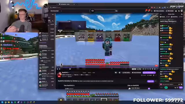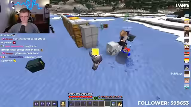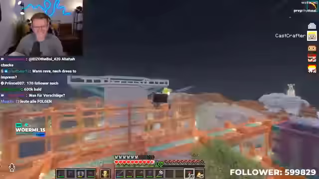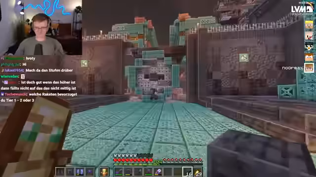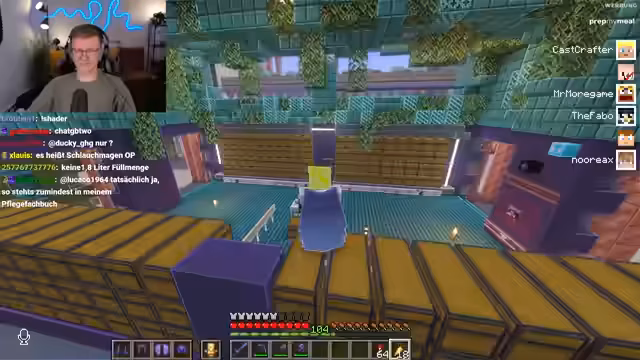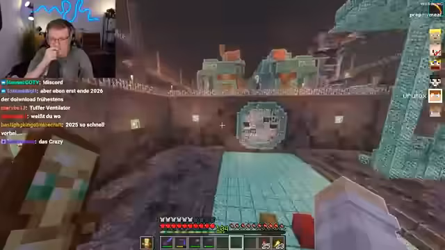 10:19:03Es wurde über aktuelle und zukünftige Bauprojekte in der Base gesprochen. Der Plan ist, im hinteren Bereich und unten 'Stuff' zu bauen, was als etwas schwieriger beschrieben wurde. Es soll eine neue 'Rohr' mit Blöcken entstehen. Die Idee, den Boden mit Lampen zu animieren, wurde aufgegriffen, wobei erwähnt wurde, dass dies erst in Angriff genommen wird, wenn der Fokus mehr auf 'Club-Life' liegt. Es gab eine kurze humorvolle Unterbrechung, in der der Streamer zugab, seinen Gesprächspartner 'pranken' zu wollen, aber es misslungen sei. Die Aufgabe, Tanks zu bauen, wurde als vierte Vision für etwas anderes genannt, und es wurde überlegt, wieder 'Slime oder sowas' zu machen. Später im Stream wurde über die Möglichkeit gesprochen, eine Ölplattform zu bauen, um die Unterwasser-Base 'creepy und eerie' zu gestalten, und es wurde Raum für einen Hafen identifiziert. Es wurde auch die Möglichkeit erwähnt, dass ein 'Revi' zugesagt hat, aber der genaue Zeitpunkt noch unbestimmt ist. Die Fertigstellung eines Bauprojekts aus dem letzten Jahr, das 'zu viel' war, wurde ebenfalls thematisiert, und der Wunsch geäußert, es dieses Jahr fertigzustellen.