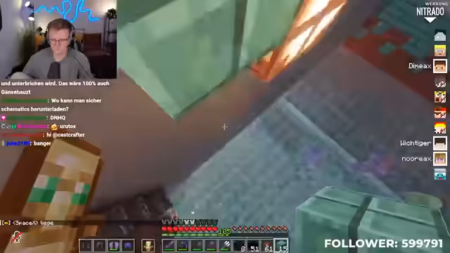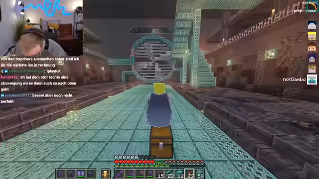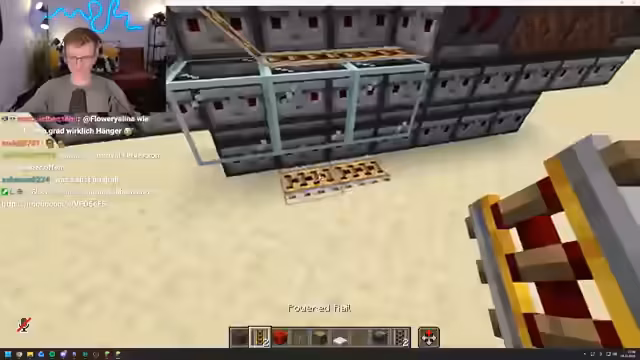03:05:29Der Streamer scherzt über mögliche Kooperationen und Placements, wie zum Beispiel Proteinkampagnen oder eine Haartransplantation als Kooperation. Er erwähnt auch die Idee eines Brillen-Placements, wofür er absichtlich seine Augen überanstrengt hätte. Im Spiel wird über den Bau von Ventilatoren in der Basis diskutiert, die ästhetisch ansprechend sein sollen, als würden die Öfen sie als Ansaugung nutzen. Es gibt technische Herausforderungen bei der Redstone-Verkabelung und dem Platzmanagement. Der Streamer überlegt, wie er die Technik auf die andere Seite verlagern kann, um mehr Raum zu schaffen. Er plant auch, ein „BANK“-Schild in Minecraft zu erstellen, wobei jeder Buchstabe einen Block groß sein soll. Die Diskussion geht weiter zu einem Problem mit einem TNT-Duper, der zwei TNTs statt einem auslöst, und der Suche nach einer Lösung für dieses Redstone-Problem.