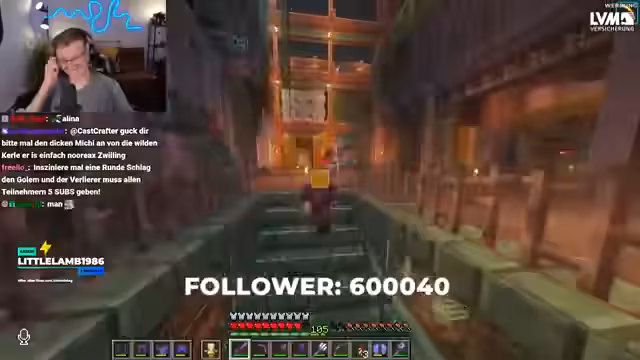 06:02:46Der Streamer und seine Mitspieler bereiten sich auf den ersten Test ihres großen Ventilator-Projekts vor. Das Bauwerk, das an einen Supersmeter-Motor erinnert und Luft ansaugen soll, ist fast fertig, benötigt aber noch einige Verkleidungen. Nach einer kurzen Überprüfung der Redstone-Schaltung und dem Hinzufügen fehlender Repeater wird der Hebel umgelegt. Der Ventilator funktioniert und erzeugt einen lauten Geräuschpegel. Die Spieler sind begeistert von dem Ergebnis, besonders von einem Block, der durch die Luft geworfen wird. Trotz der Komplexität des Bauwerks wird das Design als super simpel und effektiv beschrieben. Der erfolgreiche Test markiert einen wichtigen Meilenstein in diesem aufwendigen Minecraft-Projekt.