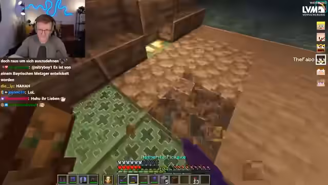03:37:20Die Unterhaltung beginnt mit einer Beschreibung eines Schmortopfs, in dem Rinderbraten mit Kartoffeln und Möhren für zwei bis drei Stunden geschmort wird. Dies führt zu einer kurzen Verwirrung über den Begriff 'Hupsi'. Anschließend wechselt das Thema zu einem technischen Problem im Spiel, bei dem der Streamer feststellt, dass er die falschen Blöcke verwendet hat. Es wird erwähnt, dass ein großes Problem gelöst werden konnte, was Erleichterung auslöst. Währenddessen wird bedauert, dass die Aufnahme nicht lief, obwohl der Streamer das betreffende Element bereits unzählige Male gebaut hat. Die Diskussion geht weiter mit einer Frage zur Creeper-Farm, die unter einer Trial-Chamber gebaut wurde, und dem Problem, dass Schneegolems in einer Savannen-Biome sofort sterben, weil es zu warm ist. Es wird nach Lösungen gesucht, wie man dieses Problem beheben kann, ohne die gesamte Farm abreißen und woanders neu aufbauen zu müssen. Alternativen wie Katzen, die jedoch als 'crazy buggy' und ineffizient beschrieben werden, oder ein wasserbasiertes Design werden in Betracht gezogen, um das ausgehobene Loch anderweitig zu nutzen, falls die Creeper-Farm nicht funktioniert.
