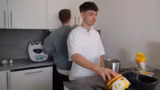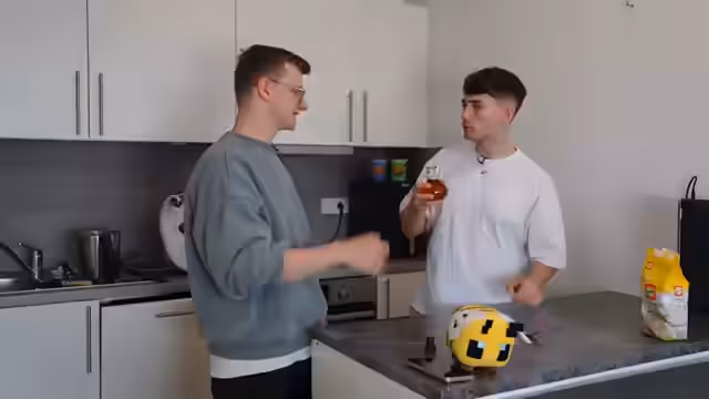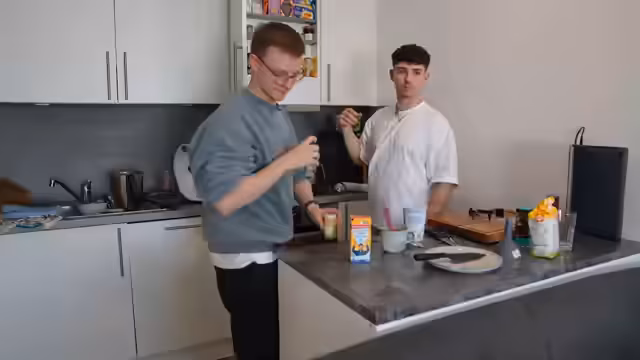 00:49:27Für das dritte Rezept wird ein „Spaßgetränk“ namens Stroh 40 (40% Alkohol) verwendet, das optisch an Honig erinnert. Streamer und Partner tauschen sich über ihre Erfahrungen mit starken Alkoholen wie Stroh 80 und Absinth aus. Beide probieren das Getränk, das als extrem unangenehm und riechend nach Reinigungsmittel beschrieben wird. Es wird deutlich, dass dies kein zum Verzehr bestimmtes Getränk ist, sondern für den Stream-Effekt dient.